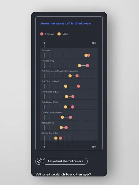 Together, the report and microsite created a coherent, engaging narrative, helping MTE communicate critical insights, influence stakeholders, and inspire action across FIA, F1 teams, media, sponsors, fans, and drivers’ families.