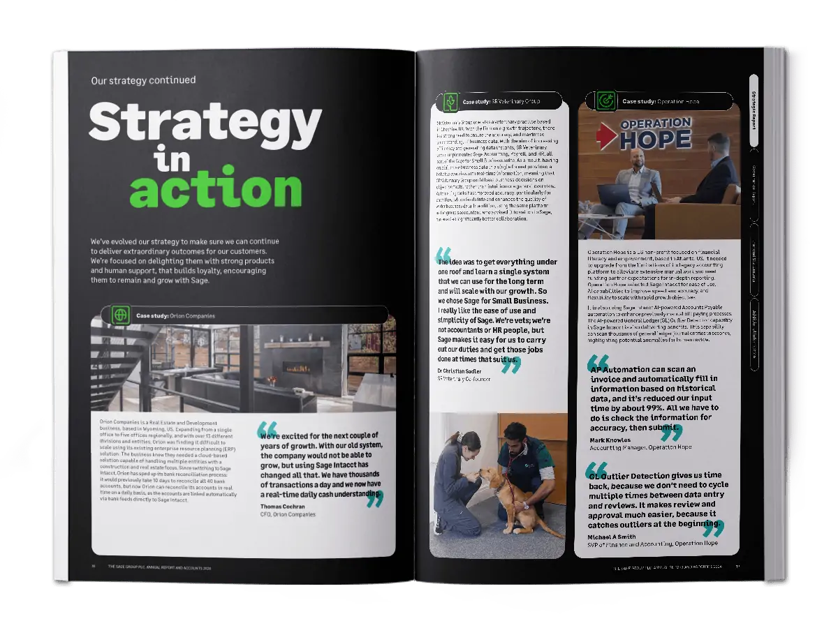 We created a multi-report ecosystem including the Annual Report, Sustainability and Society Report, ESG Databook and smaller issue-based reports on topics like climate and gender pay. By blending data, visuals and narrative, we helped showcase Sage’s ambitions and impact in an engaging, accessible way.