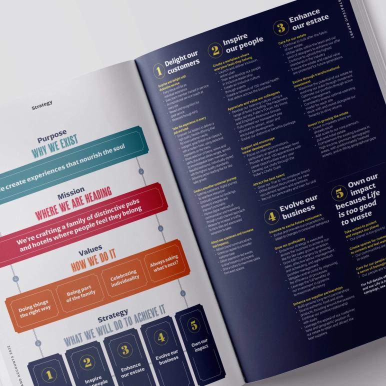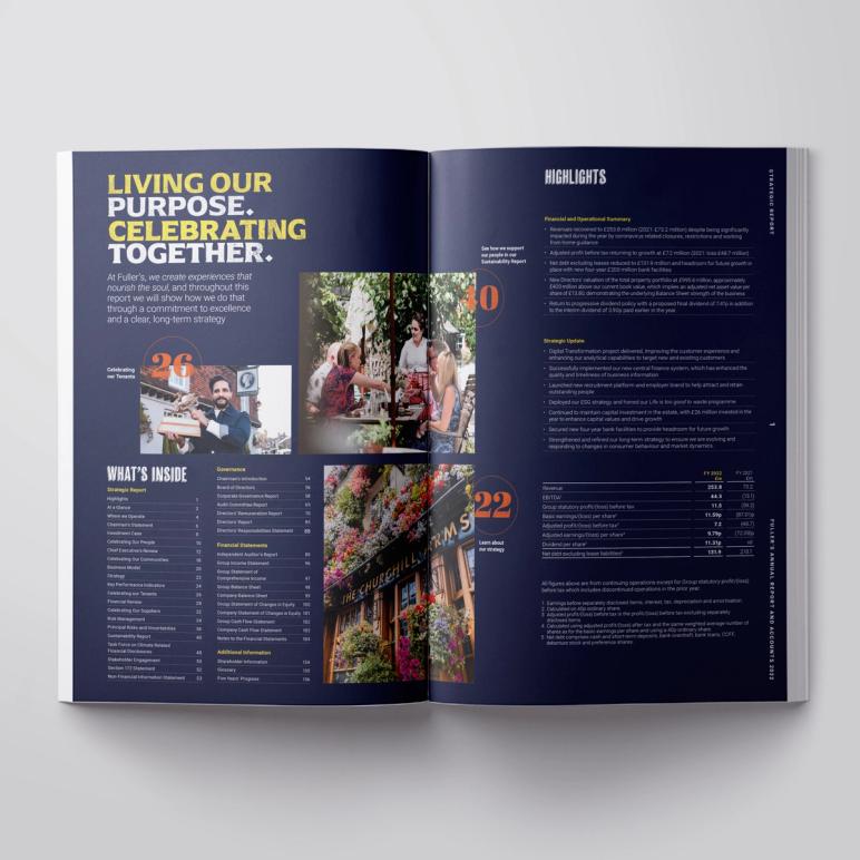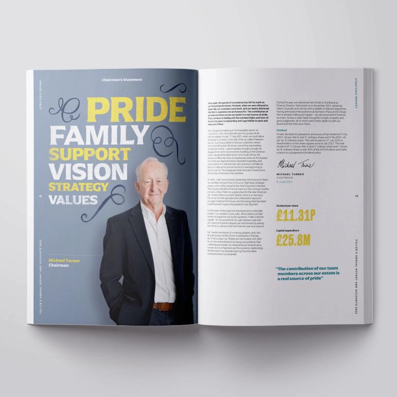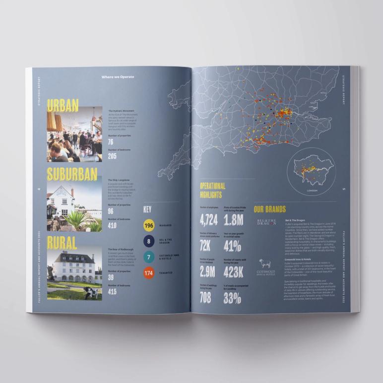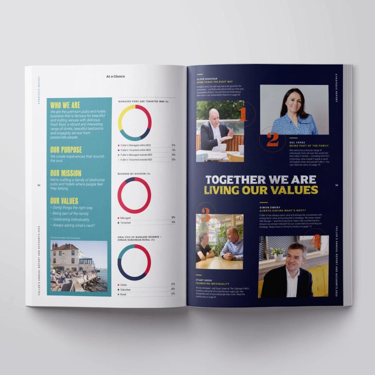 With Fuller’s recently refreshed brand, this year’s annual report provided a great opportunity to bring the new typographic style and colour palette to life, and to create a fresh new overall look and feel.