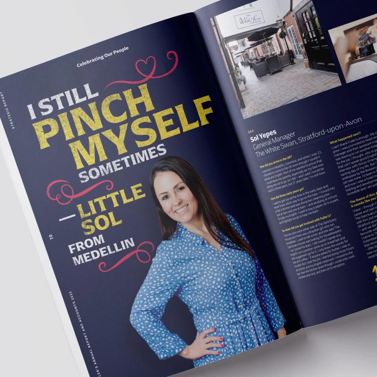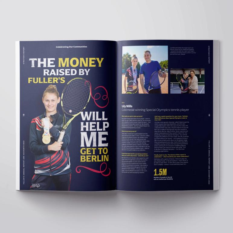 The design was based on the creative theme ‘championing the people that make Fuller’s great’ and celebrated people stories, seen throughout the Q&As in the report.
