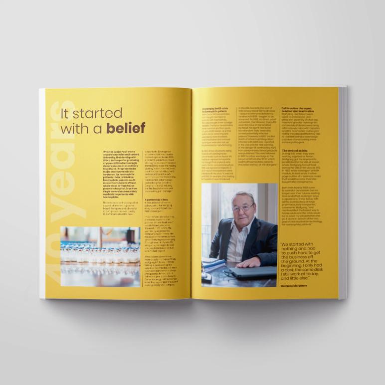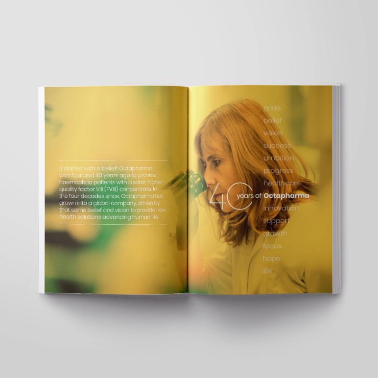 Even in the corporate arena, storytelling has the power to touch emotions. And few businesses can capture the profound effect that they have on society as Octapharma can. This year’s Annual Report marked a monumental year for Octapharma as it celebrated its 40-year anniversary. The report had to carefully balance the past, the present and the future, looking back on 40 years of rich history.