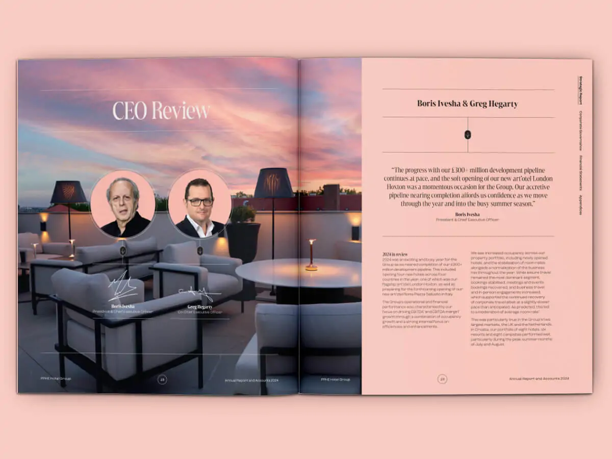 To showcase PPHE’s expanding portfolio, including flagship openings, we combined striking imagery with parallax scrolling and interactive elements. Long-form content from the print edition was repurposed into digestible online highlights, encouraging users to download the full report for deeper insights.